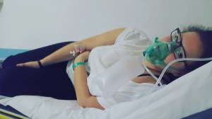 Ho concluso il primo ciclo di chemio! La cattiva notizia è che la nausea e il vomito hanno fatto la loro clamorosa e per niente attesa comparsa, la buona invece è che per ora il mal di testa non ha fatto la sua. In quattro ore ho vomitato 16 volte quindi ho chiamato l’ospedale per capire come comportarmi, dato che mi sto disidratando e rigetto i farmaci antivomito prescritti. Purtroppo la loro risposta è stata di andare subito al pronto soccorso. Ed è qui che sono, come potete vedere nella foto.