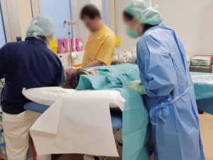 Mi hanno però spiegato che quel cosino arancione che vedete nella foto (terminologia medica di alta qualità) ha due piccoli ganci alle estremità, i quali si attaccano al sottocute in modo da non consentire al catetere di dislocarsi. Sembrerà sciocco ma sapendo che non può spostarsi a tradimento senza che io me ne accorda mi fa sentire davvero più calma e rilassata. In passato ho avuto un’esperienza traumatica legata a questa tecnica e per me era davvero difficile affrontare questa sfida. Pensate che la prima volta che mi portarono in sala operatoria per inserire il PICC io scappai a gambe levate. Fuggii letteralmente via dalla sala operatoria perché, vedendo arrivare l’anestesista con in mano il consueto camice verde da farmi indossare, andai completamente nel panico. Mio padre, spaventato quanto me, aprì la porta d’uscita dicendomi: “VAI”. Io lo feci, correndo via il più velocemente possibile. Da allora ho sempre avuto la fobia di questo intervento e per me essere riuscita a sdraiarmi su quel lettino è stata una vittoria immensa.